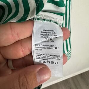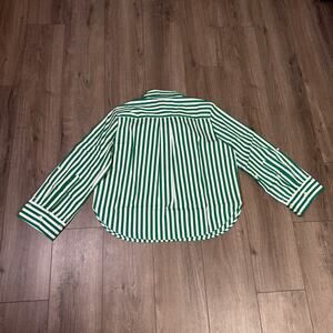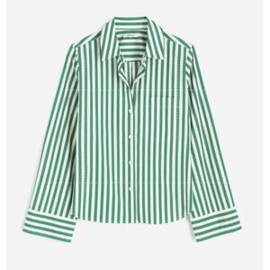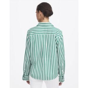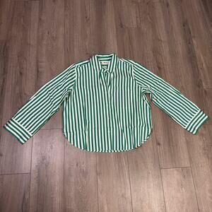 Madewell Poplin Easy Y-Neck Button-Up Shirt WMNS L Green White Sriped NU737 LS