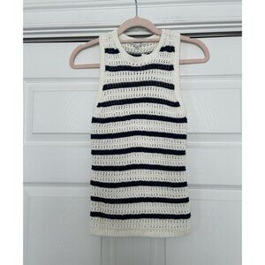 Madewell Portman Crochet Tank Top Knit Crewneck Boho Ivory/Navy Racerback Sz XXS
