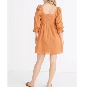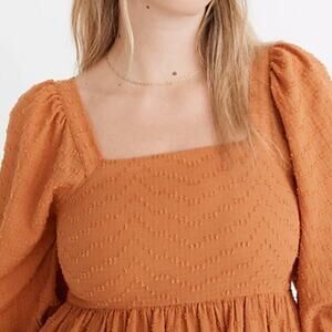 Madewell Puff Sleeve Smocked Dress Mini Textured Dots Mulled Cider Orange Size 8