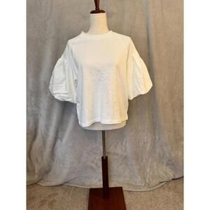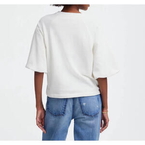 Madewell Puff Sleeve Sweatshirt Tee Womens S White Boxy Oversized Preppy NWT