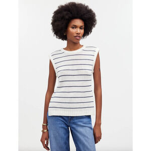 Madewell Puff Trim Sweater Vest Striped Ivory Cotton Linen Preppy XXS NWT