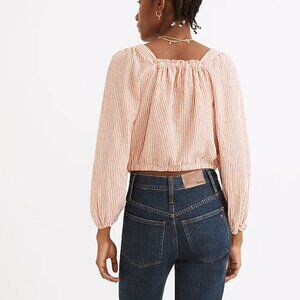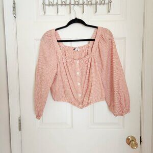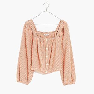 Madewell | Puff-Sleeve Button-Front Crop Top | Peach/White | Size M