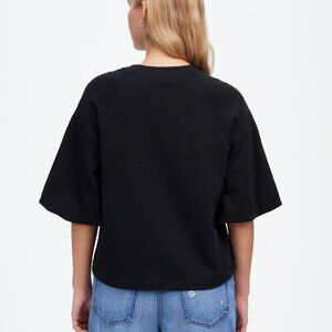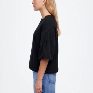 Madewell Puff-Sleeve Cotton Blend Crewneck Sweatshirt Tee Black Size S NWT