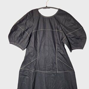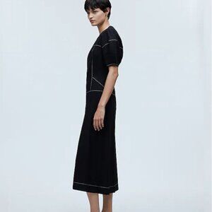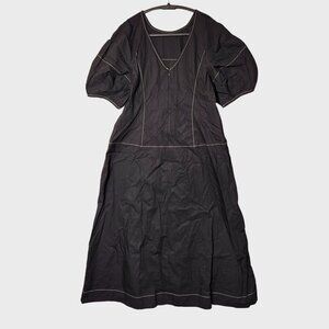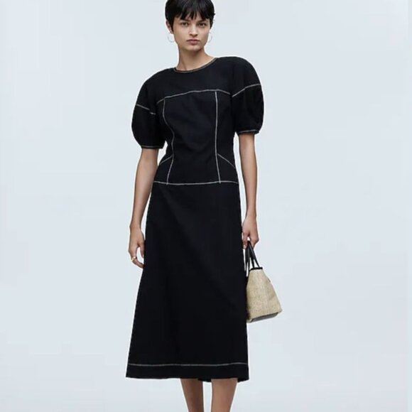 Madewell Puff-Sleeve Drop-Waist Midi Dress Black Size 2 NWT
