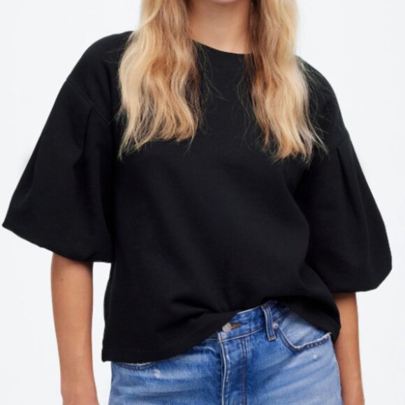 Madewell Puff-Sleeve Sweatshirt Tee Elevated Casual Top Size Medium NWT