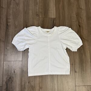 Madewell Puff-Sleeve Tee S White Crewneck Cotton Jersey Relaxed Fit Ruffle Trim