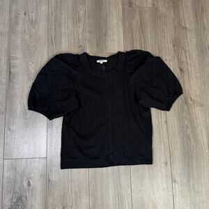 Madewell Puff-Sleeve Tee Sz S Black Crewneck Cotton Relaxed Pullover Ruffle Trim