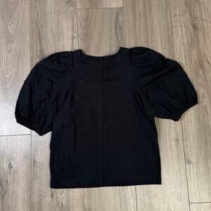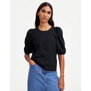 Madewell Puff-Sleeve Tee WMNS 2XS Jet Black Pullover Short Sleeve Stretch Cotton