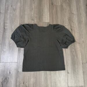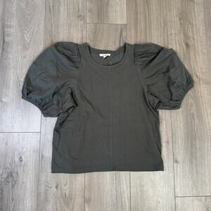 Madewell Puff-Sleeve Tee WMNS L Gray Crew Neck Cotton Relaxed Fit Ruffle Accent