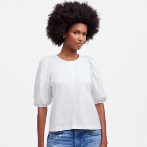 Madewell Puff-Sleeve Tee in Eyelet White, Size Small