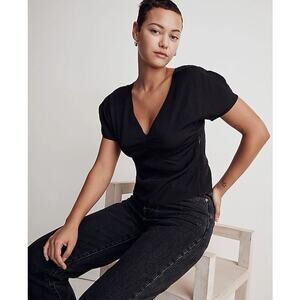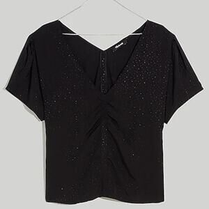 Madewell Puff-Sleeve Top in Floral Jacquard in black size 10