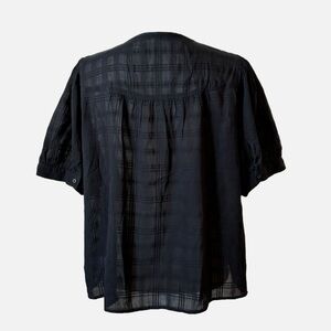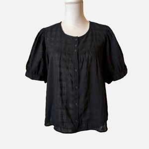 NWT Madewell Puff-Sleeve Yoke Button-Front Top in Textured Plaid Finished with voluminous puff sleeves.