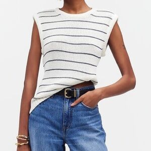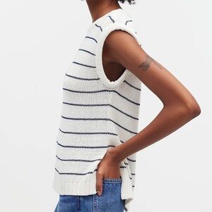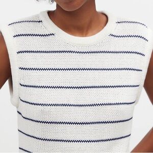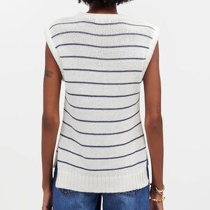 Madewell Puff-Trim Sweater Vest in Navy/Bright Ivory Stripe size S NWT NQ977
