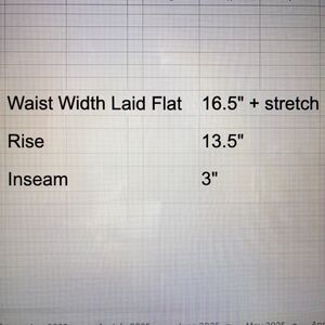 Front rise: 12 1/2"; inseam: 3 1/2".