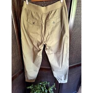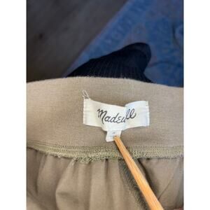 Cute pullon Joggers from Madewell. Elastic band waste with tie. Back buttoned pockets and font pockets. Elastic band ankles. Khaki color size medium. See photos for measurements.