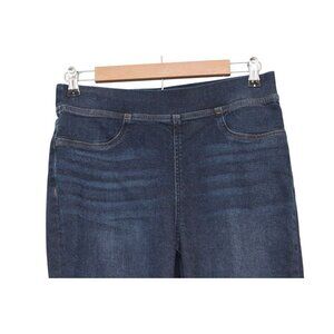 The Madewell Pull On Skinny Jeans are a stylish and comfortable choice for women. Made of Elastomultiester, Spandex, and Cotton, these dark wash denim jeans feature a high-rise waist and a pull-on closure for ease of wear. With a skinny fit and stretchy fabric, they offer both a flattering silhouette and comfortable feel. The jeans are versatile for various seasons and occasions, fitting into a bohemian, city, or preppy style theme. Perfect for a fashionable and relaxed look.