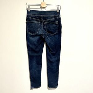 10" high rise, fitted through the hip and thigh with a 9 3/4" skinny leg opening, 25" inseam.