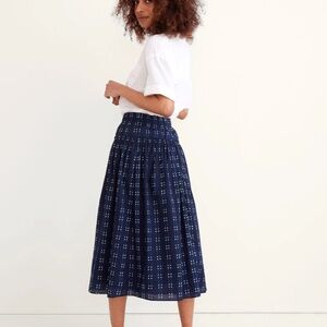 Madewell Pull-On Midi Skirt in Shibori Indigo Plaid