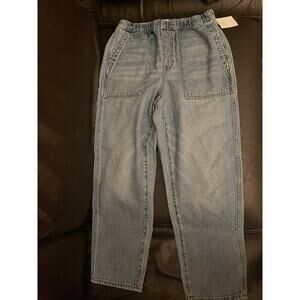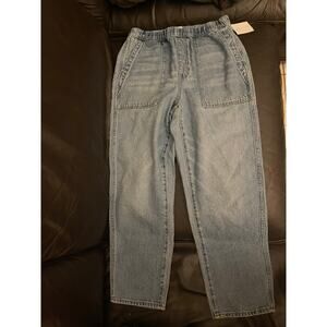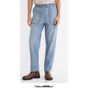 The popular and now sold out Madewell Pull-On Relaxed Jeans in Beswick Wash size small