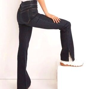 High-rise, skinny designed with flare boot with a slit to show off your shoes.