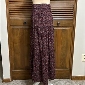 Madewell Pull-On Tiered Maxi Skirt in Orchard Floral, Navy, Plum, Rust, Gold & Brown, Size M, Good Condition