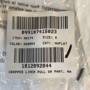 Madewell Pull-On Straight Crop Pant Womens Size 6 White