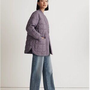Stylish quilted bomber jacket. Features a button-up front. Ribbed collar and cuffs. Two front pockets.