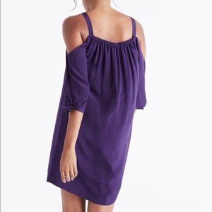 Madewell ~Rich Purple silk cold shoulder mini shift dress in size 0