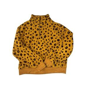 Madewell Quarter Zip Fleece Jacket Cropped Medium Large Cheetah Print
