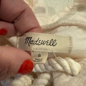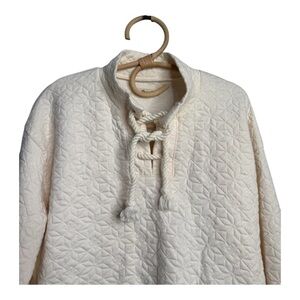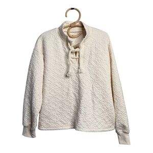 Madewell Quilted Antique Ivory Pullover Sweater N1073 Size Small Lace Tie Front