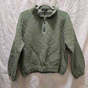 Madewell Quilted Pullover Top Olive Green Half Zip Mock Neck Women's Large