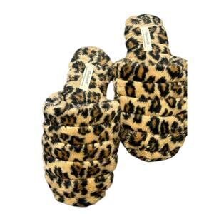Madewell Quilted Scuff Slippers - Leopard Animal Print, Faux Fur, Women’s Size 9