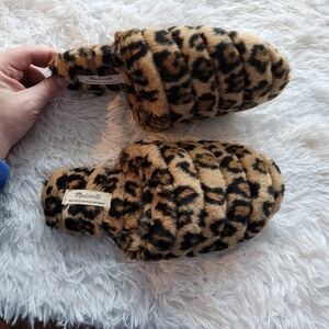 Madewell Quilted Scuff Slippers in Leopard Recycled Faux Fur. Women's size 6. New with tags. Made of supersoft—and recycled (!)—faux fur, these quilted leopard-print slippers are a treat for your feet. Welcome to Cozy Town, population: you.