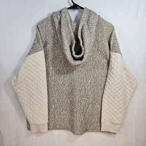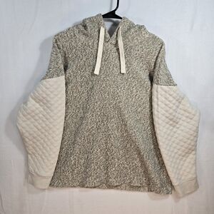 Madewell Quilted Sleeve Hoodie Sweatshirt Top L Ivory Gray Pullover