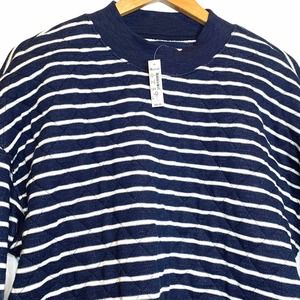 Madewell Quilted Studio Mockneck Sweatshirt in Stripe. Madewell® Long Sleeve Mock Neck Top in Stripe features a classic mock neck long sleeve tee boasting an all over striped print. Perfectly paired with jeans for a casual aesthetic.