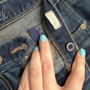 Madewell Rail straight distressed dark wash denim in size 27x34