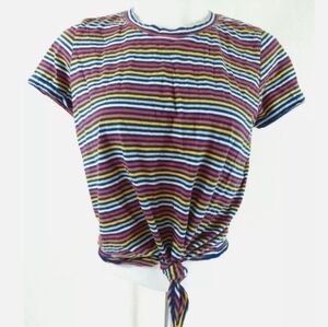 Item: Women's Knot Front Rainbow Striped Tee Shirt