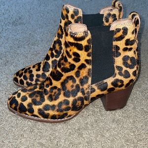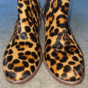 Madewell Reagan in leopard print calf hair fur and leather ankle heeled booties are a size 8. VGUC