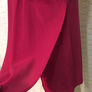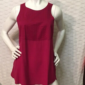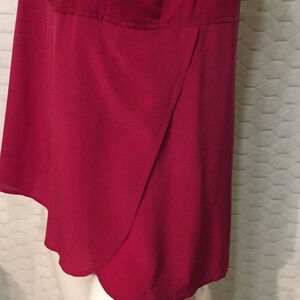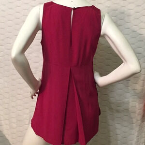 Beautiful top in a cherry red color. Bodice is cotton and body is silk. High overlapping slits on sides. See picture 4 & 5. Pleat and key hole back. This top comes from a pet free/smoke free home. Measurements are approximate.