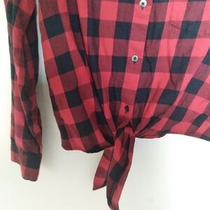Madewell Red & Black Buffalo Plaid Tie Front Button Up Flannel Shirt Size Small
