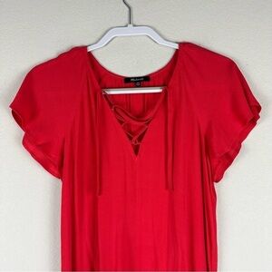 Madewell Red Lace Up Neck Short Sleeve Mini Dress Size XXS