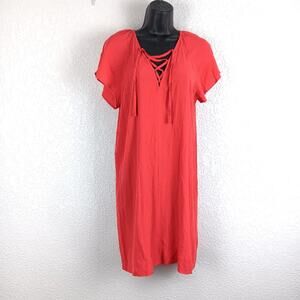Madewell Red Lace Up V-neck Flutter Sleeves Shift Dress Size M