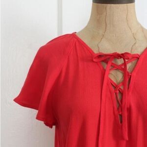 A throw-on-and-go dress with an easy A-line fit, flutter sleeves and our favorite lace-up neckline. Drapey and easy, this one can totally handle the am-to-pm thing. Super stylish and comfy. From non-smoking, non-pet home.