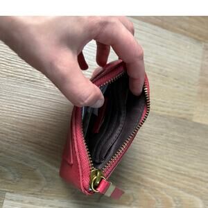 Sleek red leather wallet. Compact design. Perfect for essentials. NWOT