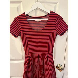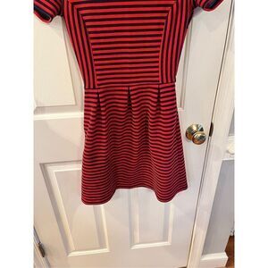 Gently used. Stripes have texture to them. Measures 15” pit to pit and has a side zip closure. Waist across is 12” dress is 33” long.