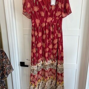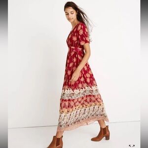 Madewell Red V-Neck Flutter Sleeve Maxi Sundress