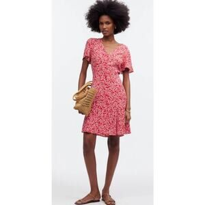 Madewell Red White Floral Daisy Short Sleeve V-Neck Button Down Mini Sun Dress 4