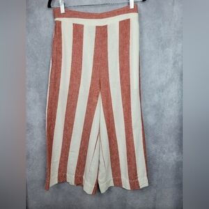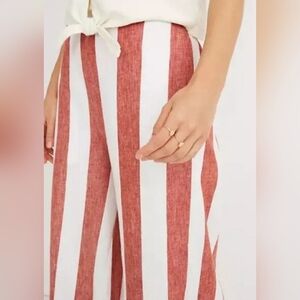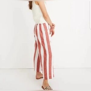 Madewell Red White Huston Pull-On Crop Pants In Bold Stripe Medium Linen Cotton
