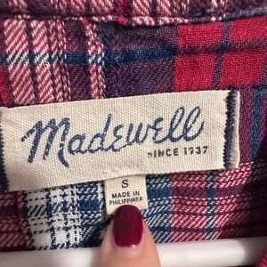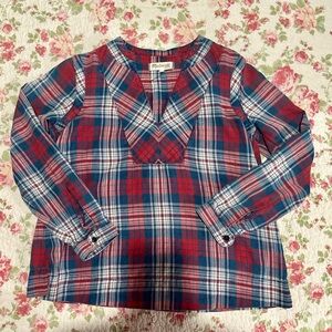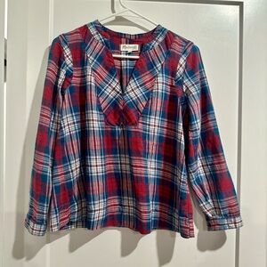 Madewell Red and Blue Plaid V-Neck Top Size Small