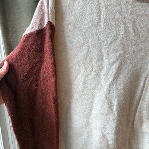 Very on point with the fall trend of browns. Madewell color block sweater. Oversized. Large front pocket square. Soft. Creams and rich brown tones. Crew neck style. Good used condition- minor pilling on arms but no major flaws.